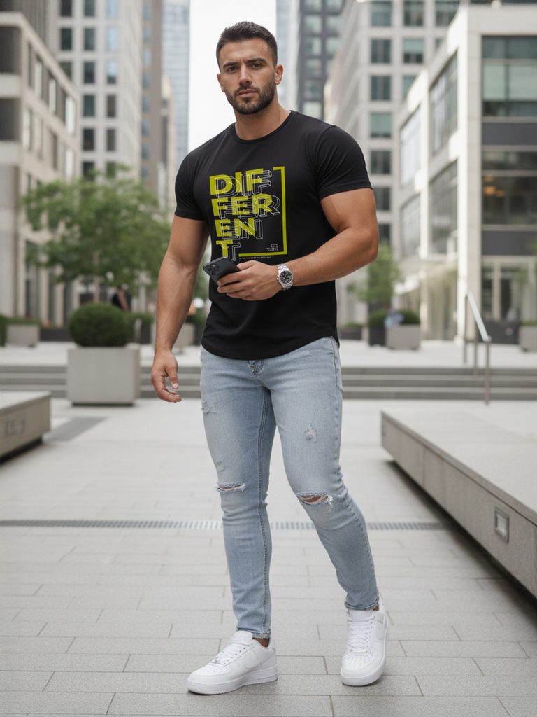 - zanimiva majica s kratkimi rokavi