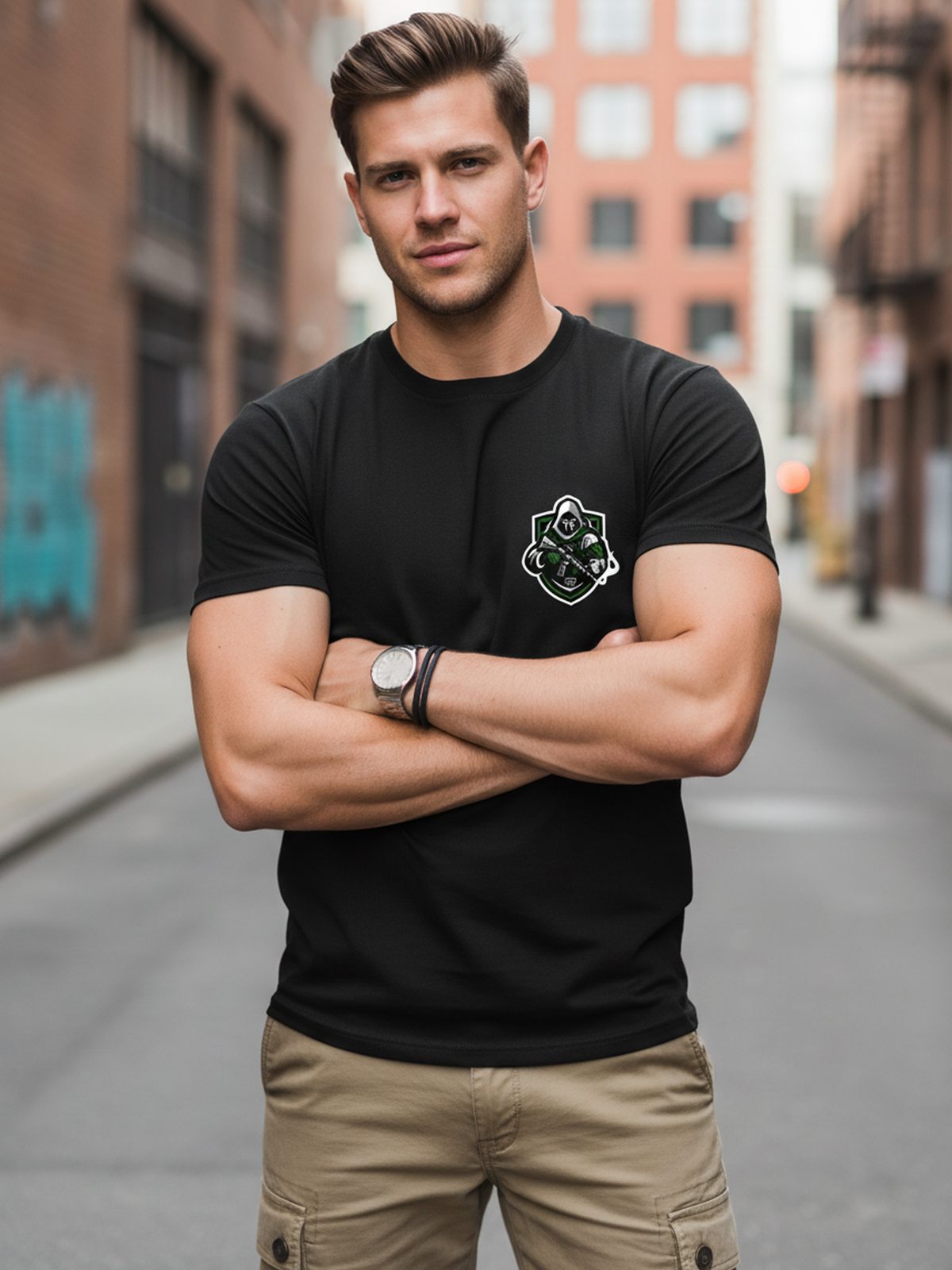 Moška črna majica z izvirnim potiskom