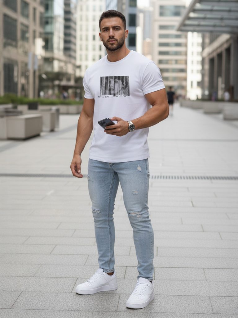 - zanimiva majica s kratkimi rokavi