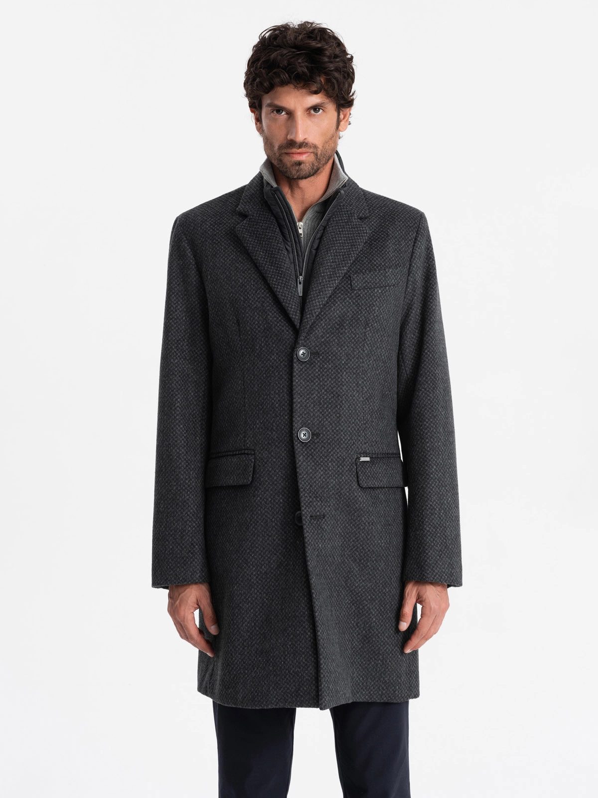 - dolg zanimiv plašč, vzorčasta tkanina