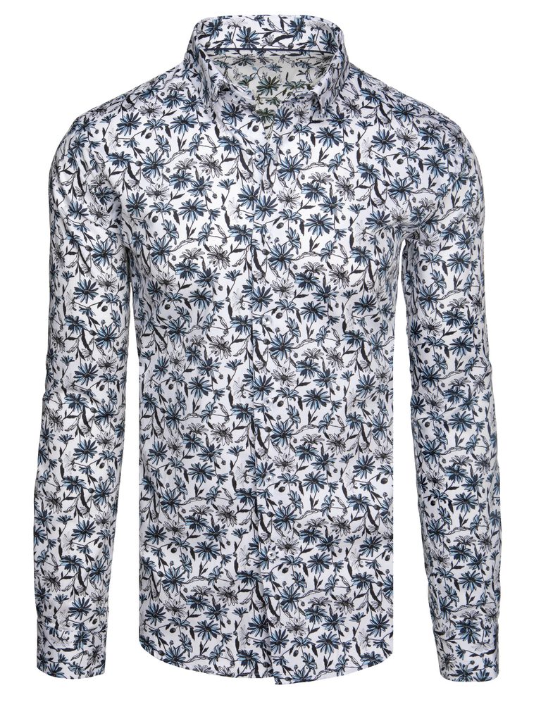 Privlačna bela srajca s cvetličnim modrim vzorcem