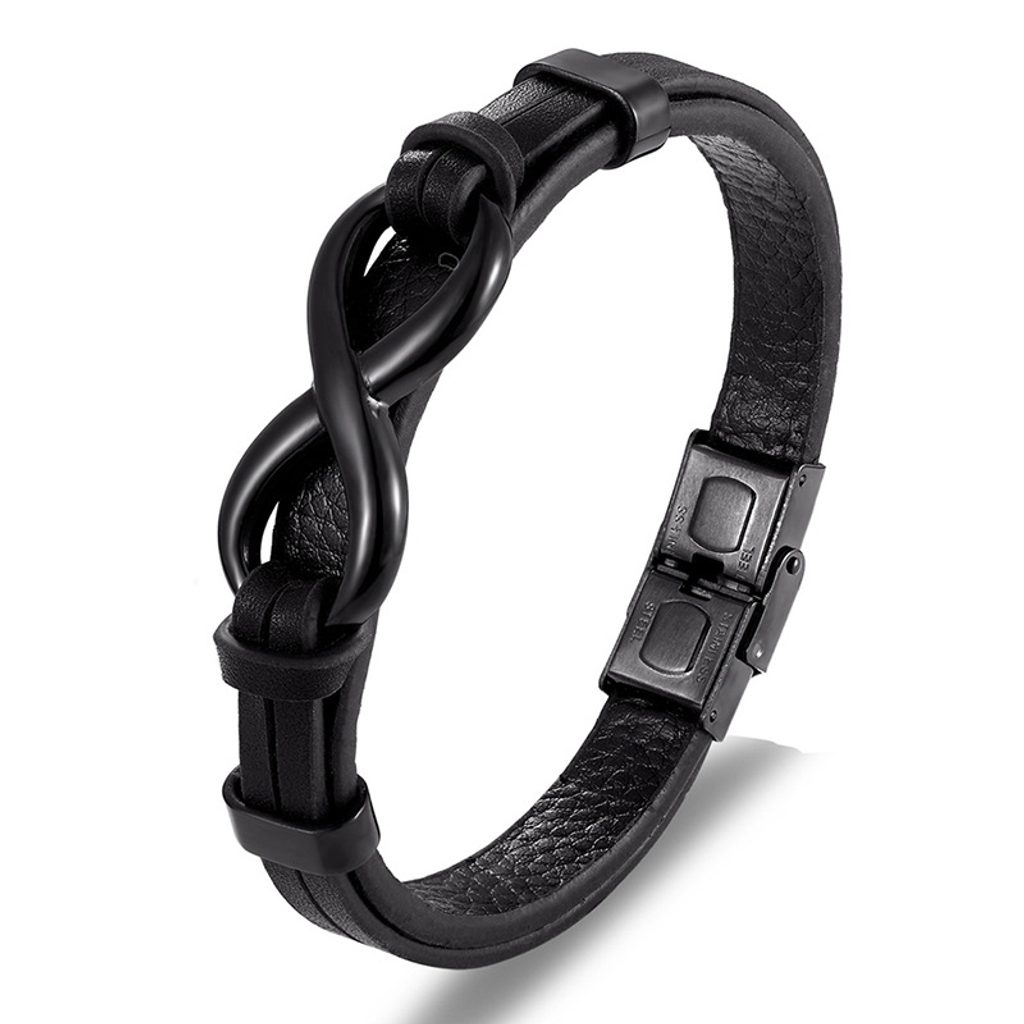 Elegantno moško zapestnico iz kakovostnega usnja dopolnjuje izviren oblikovalski element - znak neskončnosti. Robusten, a eleganten dodatek, ki odlično poudari sodobno obleko. Zapestnica se priročno zapenja s kovinsko magnetno zaponko.
