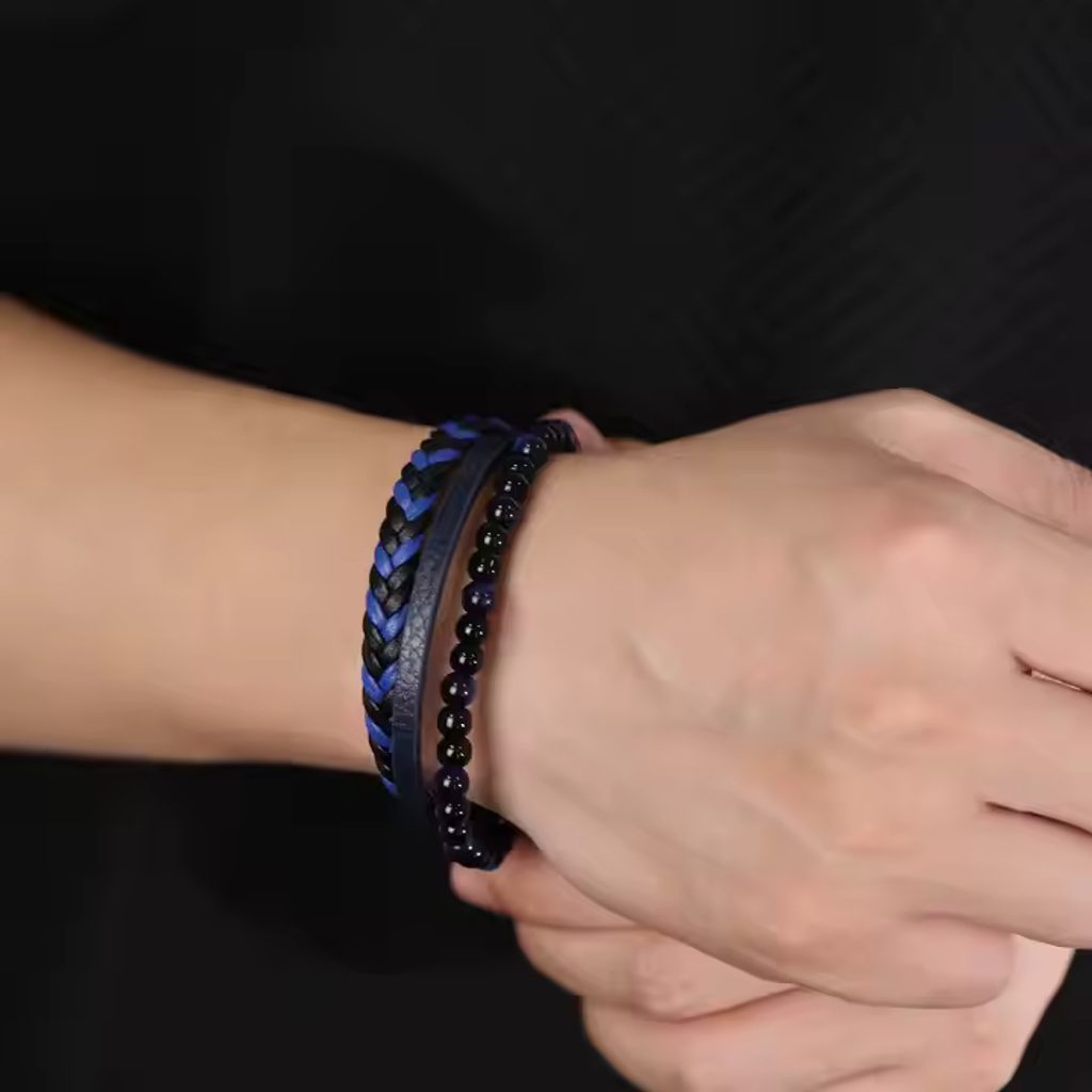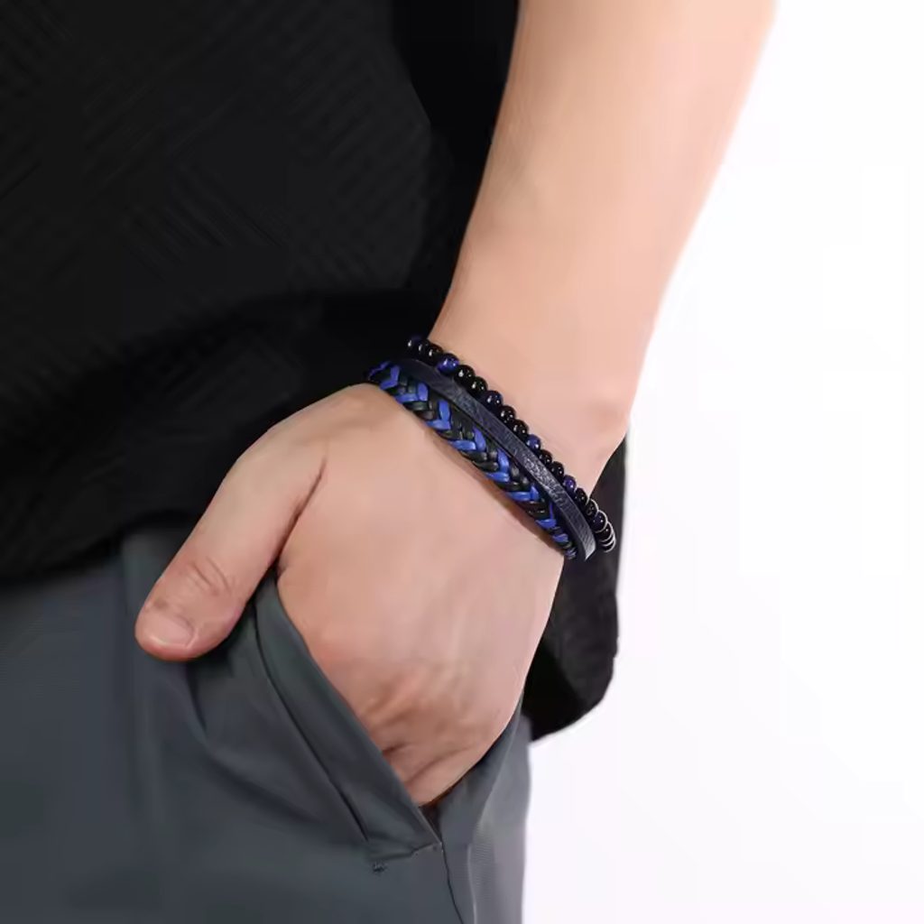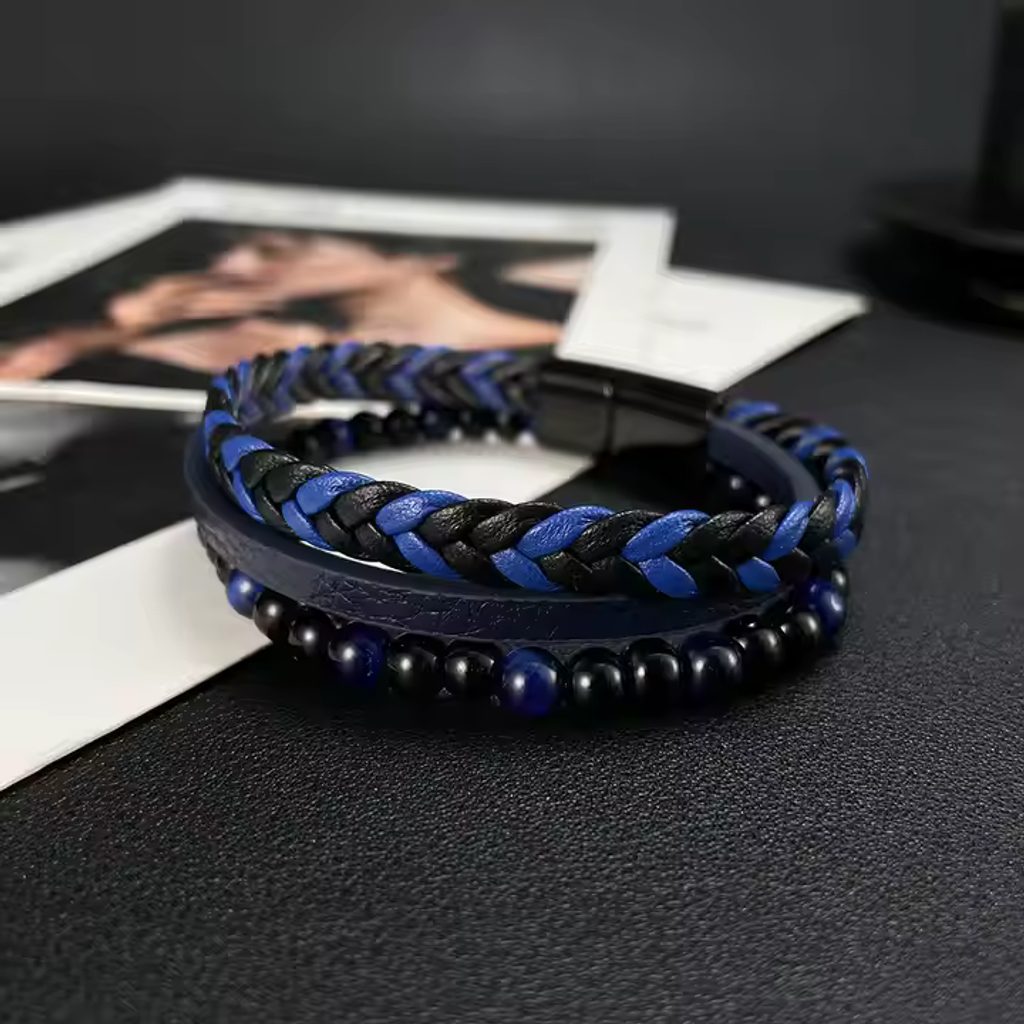 Modra usnjena moška zapestnica