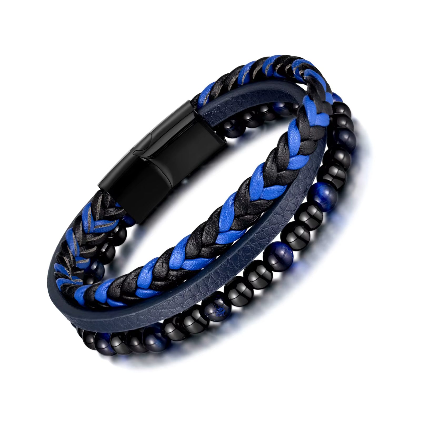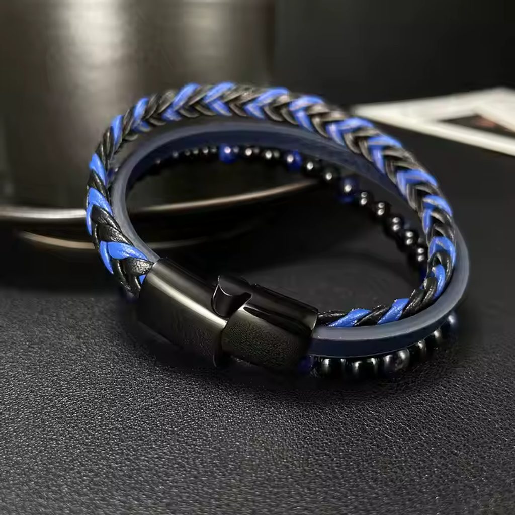 • Modra usnjena moška zapestnica